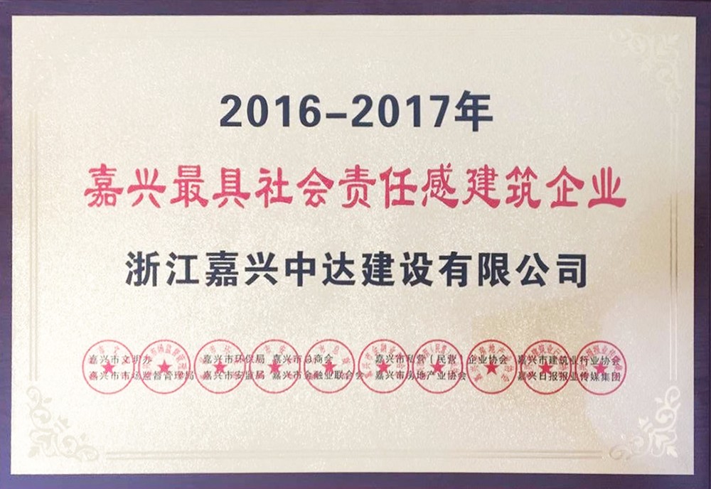 中達建設(shè)獲嘉興最具社會責任感建筑企業(yè)