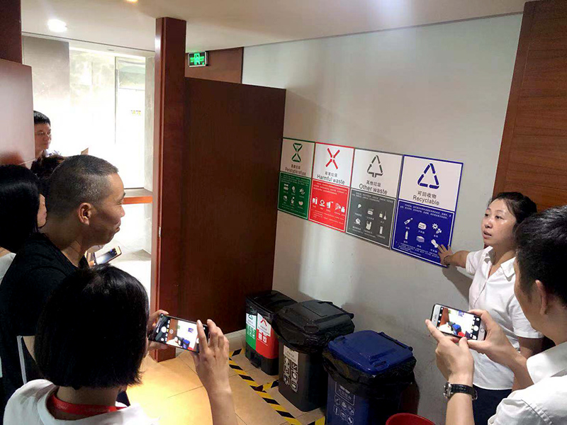 集團(tuán)公司是百步鎮(zhèn)垃圾分類工作的示范點(diǎn),不斷完善軟硬件配備,做好垃圾分類點(diǎn)、垃圾分類桶設(shè)置等工作,同時(shí)舉行垃圾分類宣講會(huì),講解垃圾分類知識(shí),并通過(guò)大廳廣告機(jī)、集團(tuán)公眾號(hào)、微信群、《中達(dá)報(bào)》等不斷擴(kuò)寬宣傳途徑,加強(qiáng)并幫助員工養(yǎng)成垃圾分類的好習(xí)慣。
