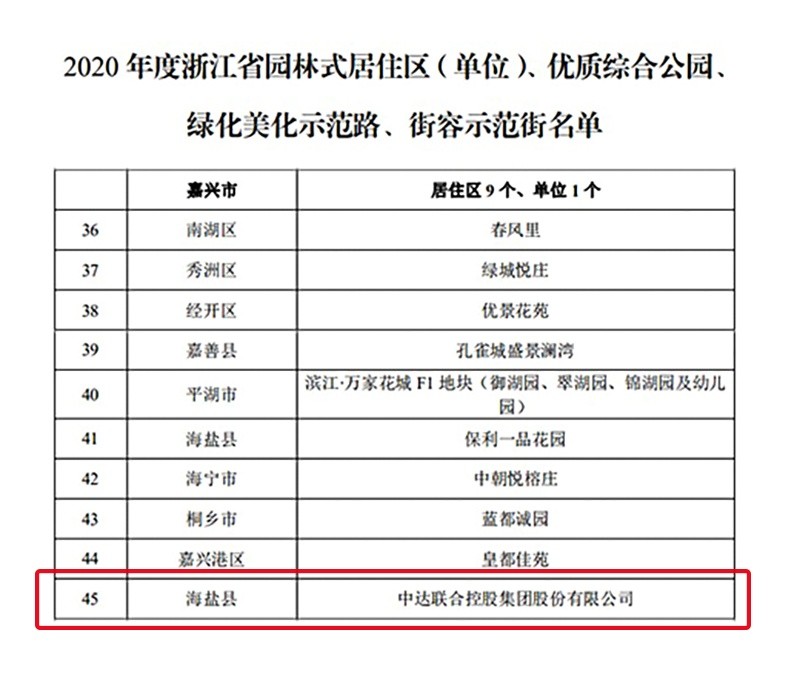 喜訊 | 中達集團榮獲2020 年度浙江省園林式單位