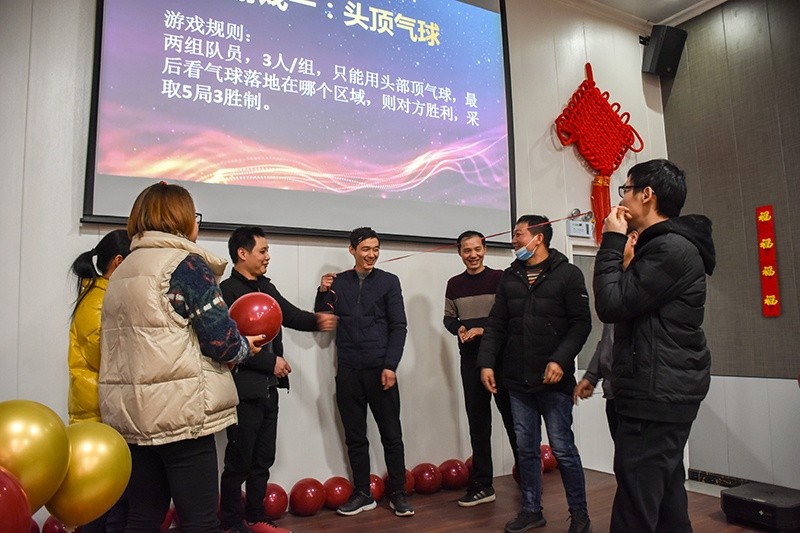 在游戲環(huán)節(jié)中,公司領(lǐng)導與員工積極參與親密互動,歌聲、掌聲、歡呼聲一直在會場上蕩漾。