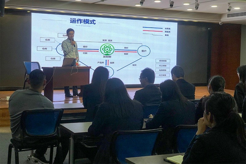 會(huì)上,集團(tuán)信息部主任王建龍向大家進(jìn)行了背景闡述,使大家對(duì)“發(fā)財(cái)樹”平臺(tái)項(xiàng)目的來源和項(xiàng)目啟動(dòng)的必要性有了一定了解。“發(fā)財(cái)樹”寓意事業(yè)蒸蒸日上,業(yè)績(jī)?cè)絹碓胶?,是集團(tuán)、公司領(lǐng)導(dǎo)對(duì)中達(dá)國(guó)際的殷切期望。王建龍還講解了平臺(tái)的運(yùn)作模式,引領(lǐng)大家對(duì)“工廠、公司、客戶、系統(tǒng)”四者之間相互流轉(zhuǎn)內(nèi)的過程進(jìn)行了解。