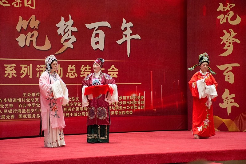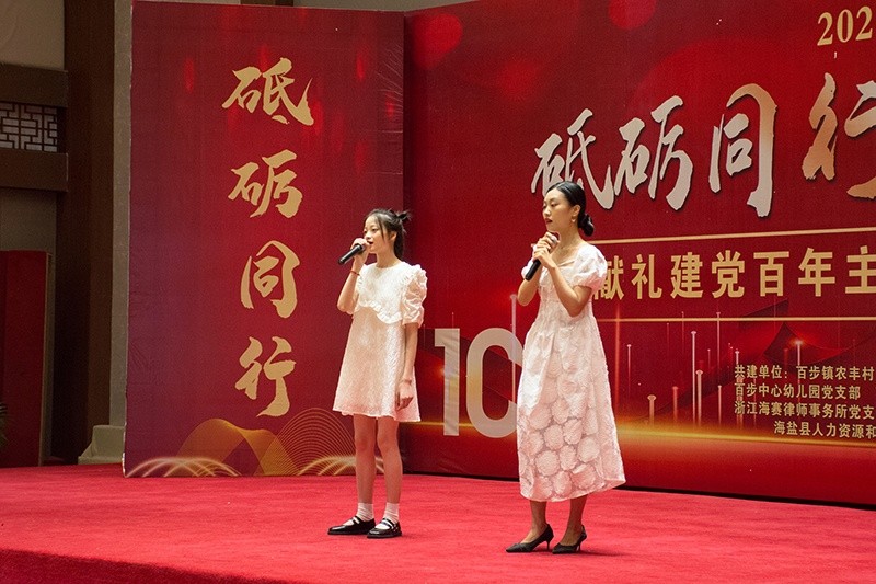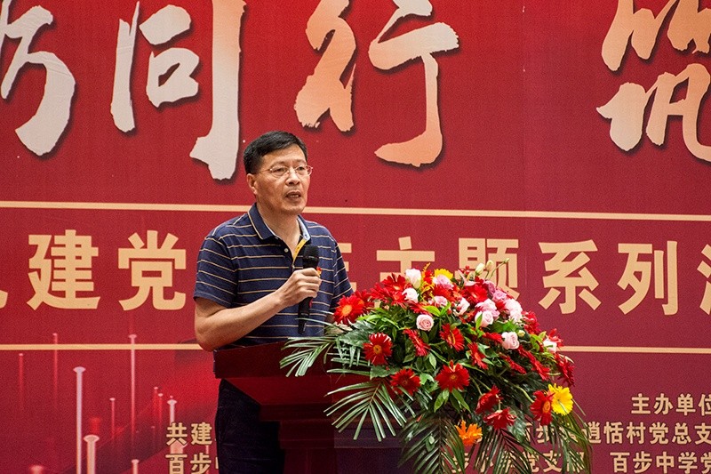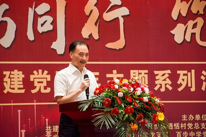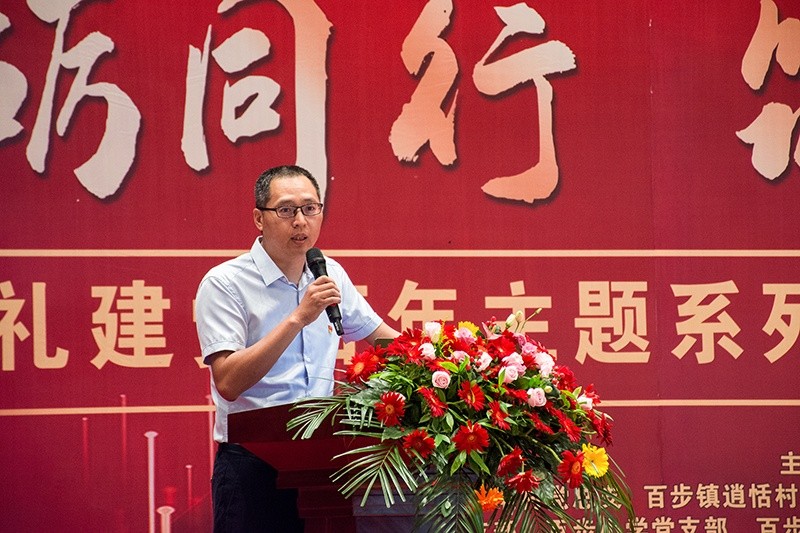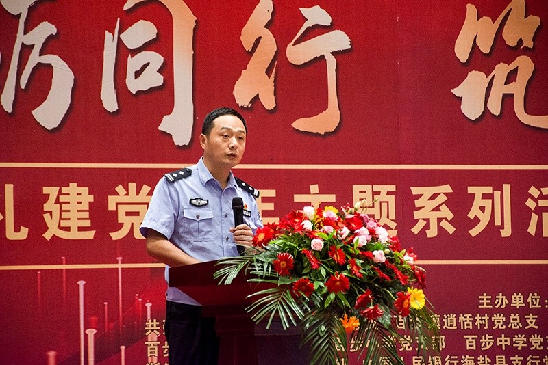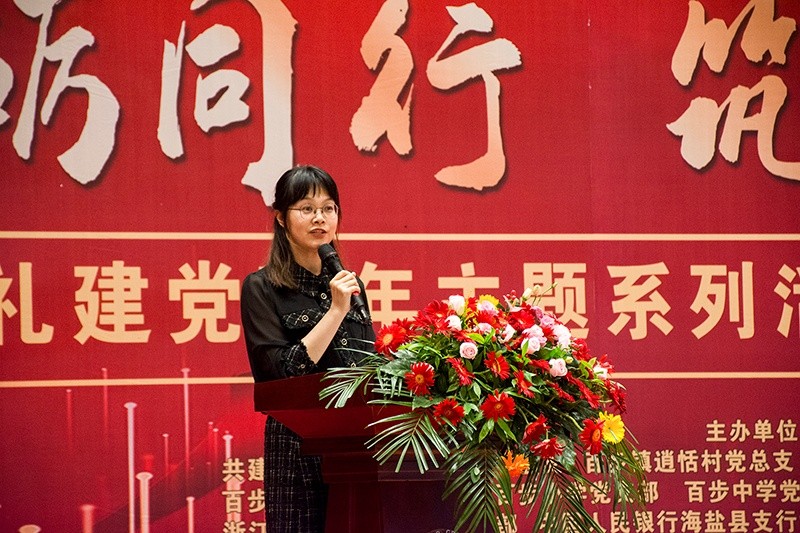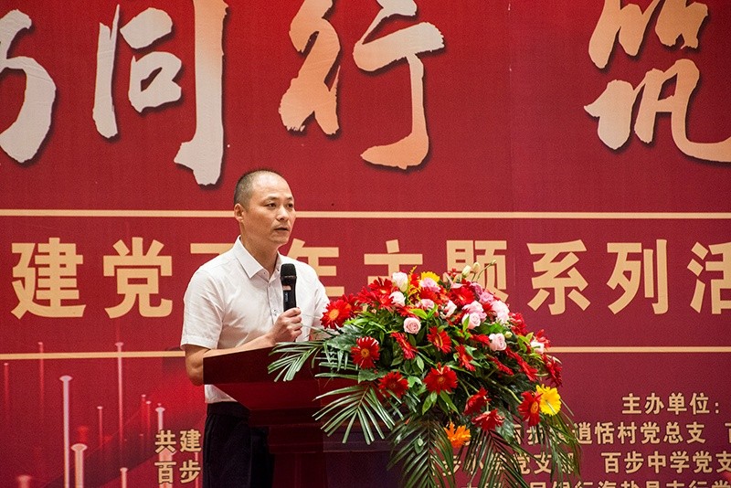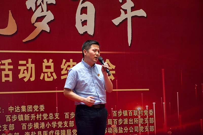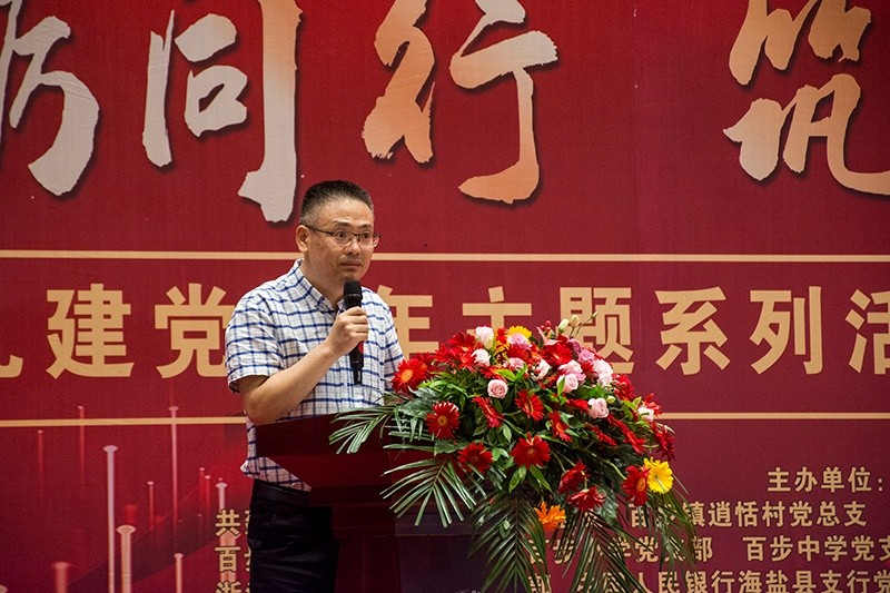 大會最后,百步派出所黨支部副書記、政治教導員 干凱軍,百步中學黨支部書記 、校長 范兢,百聯(lián)村黨委書記 葉吳良,中國人民銀行海鹽縣支行副行長、黨支部副書記 沈明法,海鹽縣醫(yī)療保障局黨組書記、副局長 楊林峰,浙江省榮軍醫(yī)院黨委委員、紀委書記 楊雪明,中達集團黨委書記、董事長 金惠明上臺致辭,紛紛對本次獻禮建黨百年主題系列活動的成功舉辦表示祝賀。