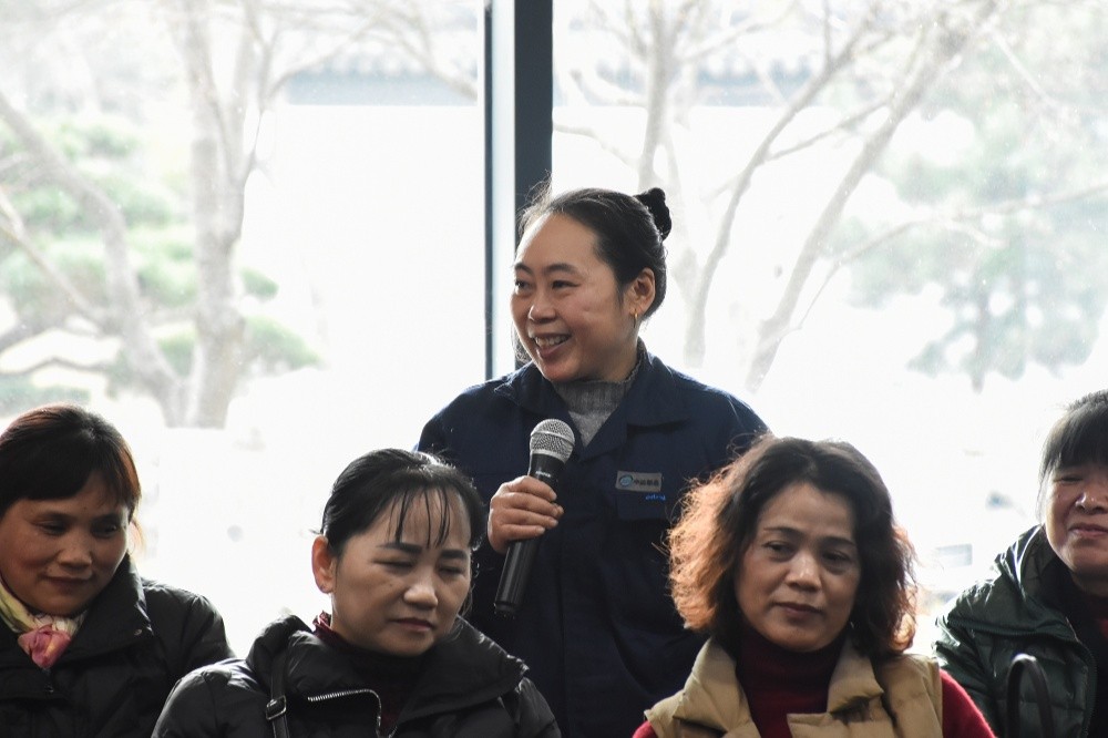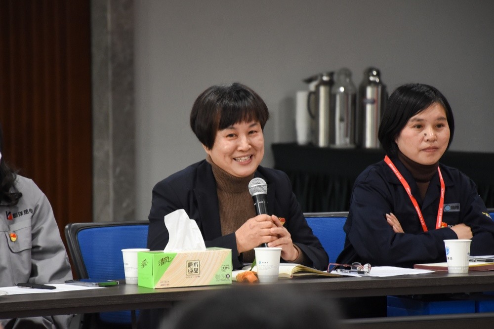 隨后,在座的老前輩們紛紛拿起話筒介紹自己,講述起自己在中達的成長經(jīng)歷。在座談會上我們了解到,在座的80多位老員工都在中達工作了超10個年頭,更有甚者在自己剛踏入社會的那一刻就一直在留在中達,為企業(yè)的發(fā)展奉獻一生。中達新材質(zhì)保部經(jīng)理吳月琴分享了自己在中達30年的崢嶸歲月,她始終堅持把愛崗敬業(yè)作為自己的行為準(zhǔn)則,嚴(yán)格要求自己,2008年取得工程師專業(yè)技術(shù)資格,2020年取得金屬材料專業(yè)高級工程師專業(yè)技術(shù)資格,激勵著中達新材的青年們學(xué)習(xí)。中和化學(xué)塔內(nèi)件車間氬弧焊工王德蓉,2004年進入中達,2008年調(diào)入塔內(nèi)件車間學(xué)習(xí)沖床編程,2013年自學(xué)焊接技術(shù),后成為了塔內(nèi)件車間唯一的女焊工,在自己的崗位上干一行、愛一行,鉆一行、精一行。