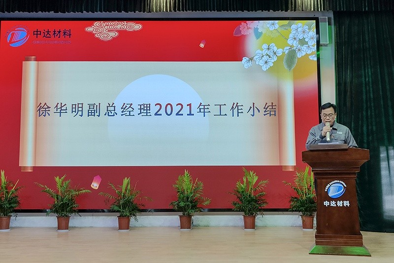 中達(dá)材料副總經(jīng)理徐華明作2021年度工作小結(jié)。徐總強(qiáng)調(diào),2021年中達(dá)材料打了個(gè)“翻身仗”,各項(xiàng)經(jīng)濟(jì)指標(biāo)十分亮眼,受到了集團(tuán)高度肯定,這也是五年發(fā)展規(guī)劃關(guān)鍵節(jié)點(diǎn)上的重大突破。