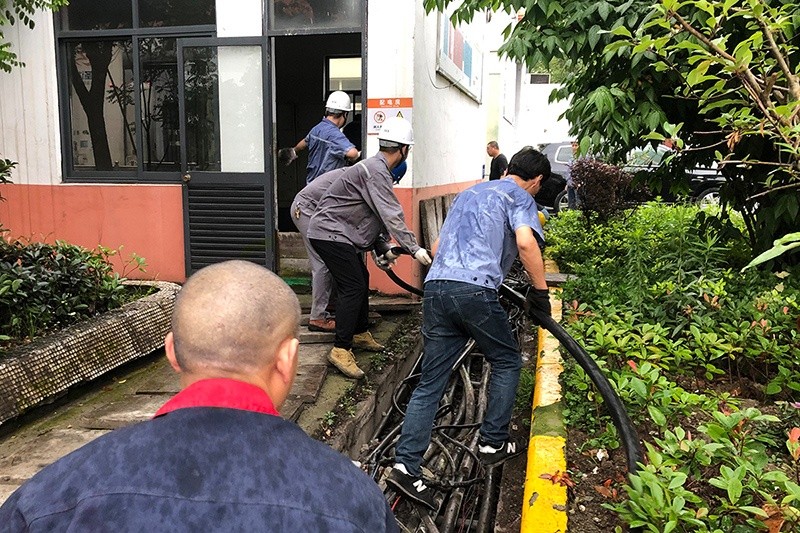 當(dāng)時(shí)任務(wù)重、時(shí)間緊,又缺少人力來(lái)拉動(dòng)和鋪設(shè)電纜,中達(dá)材料黨支部立即發(fā)動(dòng)公司黨員,參與到協(xié)助公司機(jī)電部鋪設(shè)電纜的搶修工作中。第二天清晨5點(diǎn)多,天剛亮不久,公司黨支部書(shū)記吳漢民帶著30多名黨員同志來(lái)到搶修現(xiàn)場(chǎng),一起冒雨將120多米的大電纜從配電房穿過(guò)線溝,拉至6#機(jī)配電柜處。