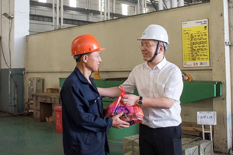 此外,百步鎮(zhèn)人大主席蔡耀明,黨委副書(shū)記、百步鎮(zhèn)黨委委員、百步鎮(zhèn)工會(huì)主席王哲,工會(huì)副主席張陸君一行也來(lái)到中達(dá),為一線員工們送來(lái)清涼。慰問(wèn)組強(qiáng)調(diào),各單位要做好高溫酷暑期間的防暑降溫工作,堅(jiān)持以人為本,妥善安排員工休息時(shí)間。