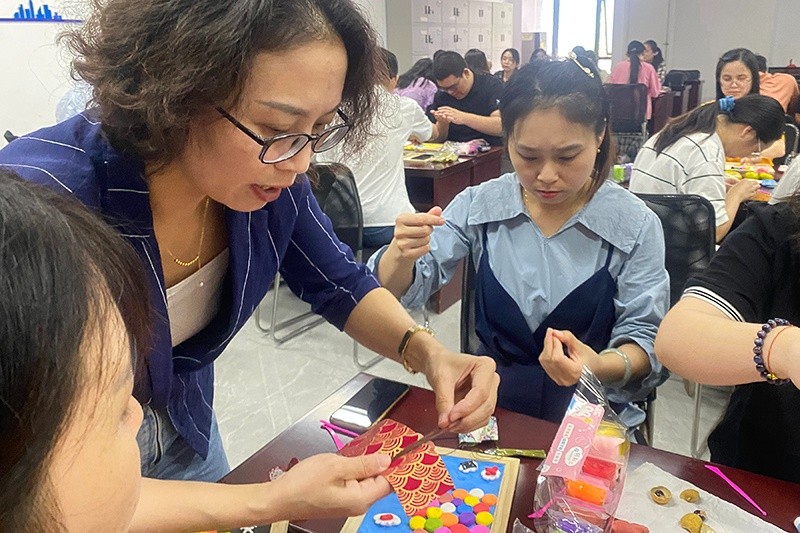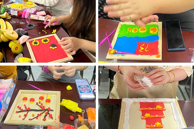 觀影結(jié)束后,同志們熱血沸騰、滿懷激情,親自動(dòng)手制作國(guó)慶主題粘土畫,表達(dá)著對(duì)祖國(guó)深情的熱愛與祝福。大家用粘土勾勒紅色印記,用色彩點(diǎn)燃愛國(guó)情懷,用掌心和滿懷愛心描繪了一個(gè)又一個(gè)燦爛美好的中國(guó)夢(mèng)。