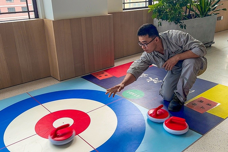 中午,社員們陸陸續(xù)續(xù)來到活動(dòng)現(xiàn)場(chǎng)進(jìn)行分組,參與本次活動(dòng)的20余人共分成三組,進(jìn)行3項(xiàng)比拼。第一項(xiàng)游戲是乒乓球顛球,帶球來回跑接力賽,各社員都緊張地盯著球防止球掉落,有快跑的,有穩(wěn)走的,各種方式無不體現(xiàn)了大家的獨(dú)門技巧。第二項(xiàng)游戲是扔沙包,大家需要將沙包拋成拋物線,輕輕落在板上才能進(jìn)洞。第三項(xiàng)游戲是旱地冰壺,大家對(duì)該項(xiàng)游戲都有著濃厚的興趣,紛紛提前嘗試,而在比賽中,有些社員還是由于緊張沒有把控好力度,但也玩得不亦樂乎。