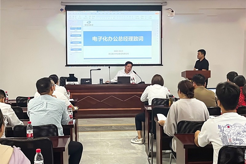 在公司電子化辦公啟動會上,中達(dá)建設(shè)總經(jīng)理肖國生對此次啟用電子合同審批、用印以及施工成本測算軟件等信息化推進工作給予了充分肯定,強調(diào)數(shù)字化轉(zhuǎn)型是公司未來發(fā)展的重要方向,也是適應(yīng)新經(jīng)濟時代的必然選擇,公司需要不斷加強自身實力,積極應(yīng)對數(shù)字化時代的挑戰(zhàn)和機遇,實現(xiàn)數(shù)智管理轉(zhuǎn)型和可持續(xù)發(fā)展。
